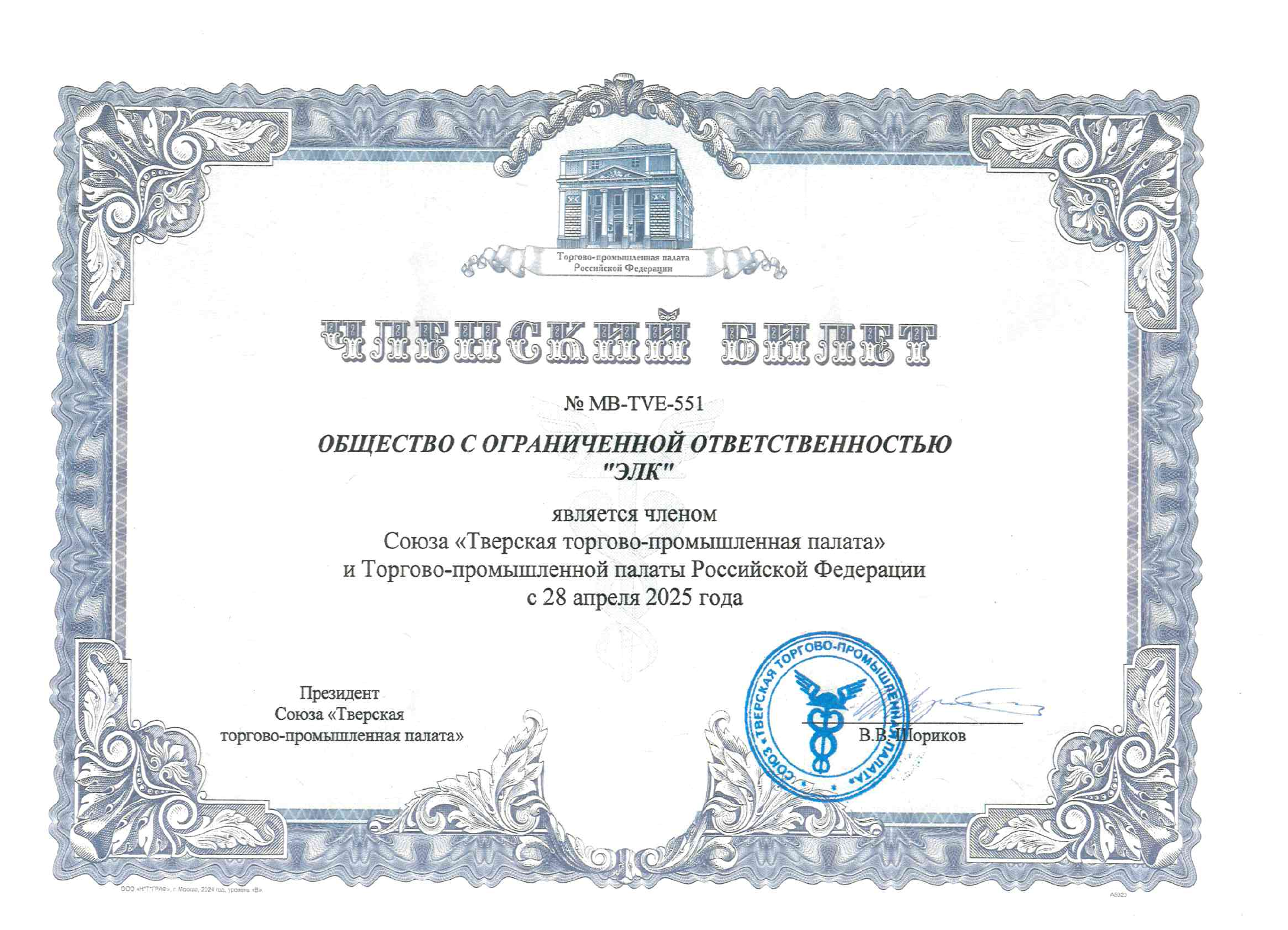 СмотретьЧленский билет ООО "Элк" в Союзе "Тверская торгово-промышленная палата" и Торгово-промышленной палате Российской Федерации